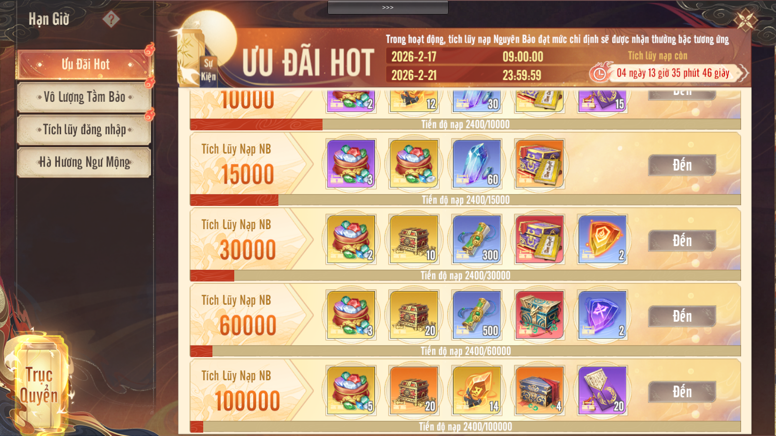 Trong thời gian hoạt động, tất cả nạp đều tính vào hoạt động lần này (Gồm Quà Mua Trực Tiếp)