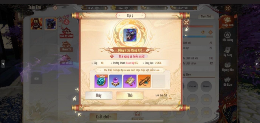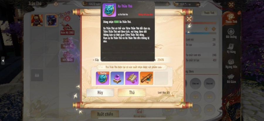 Với mỗi lần thả thần thú có thể nhận được 1000 Xu Thần Thú.