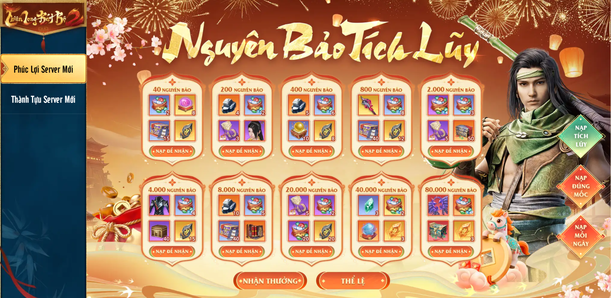 | Nạp Mỗi Ngày đạt 4000 Nguyên Bảo (có thể tích lũy) | |