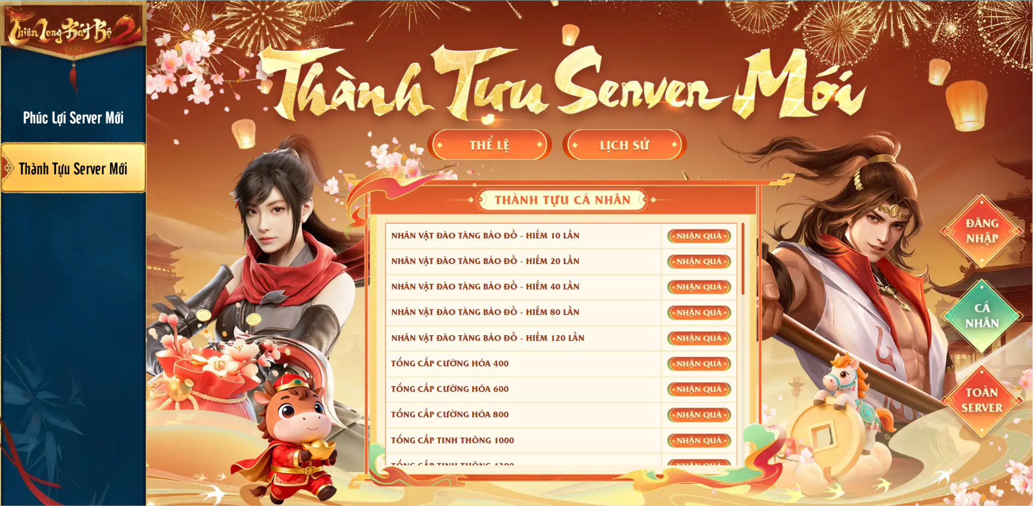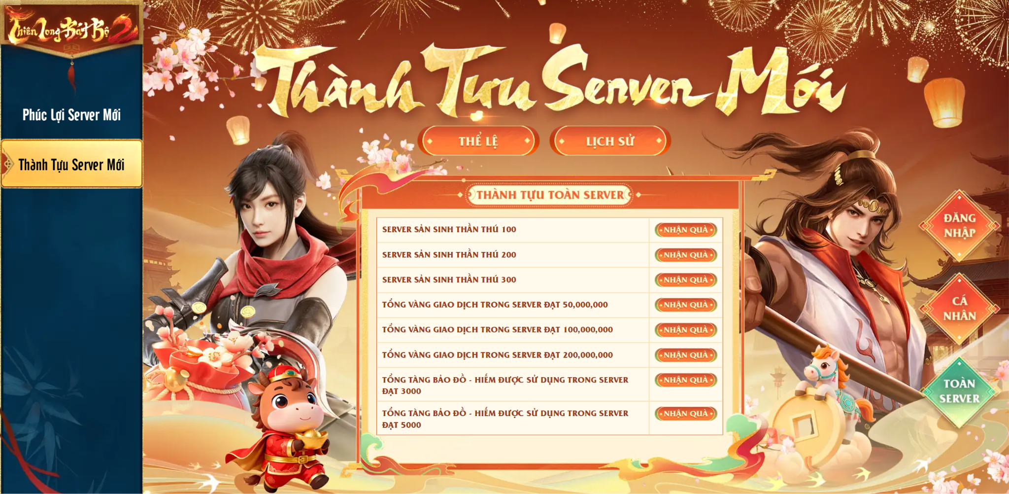 | Tổng vàng giao dịch trong server đạt 50,000,000 | 20 Rương Tinh Thông-Cao, 5 Sách KN Trân Thú-Thường, 100 NBK |