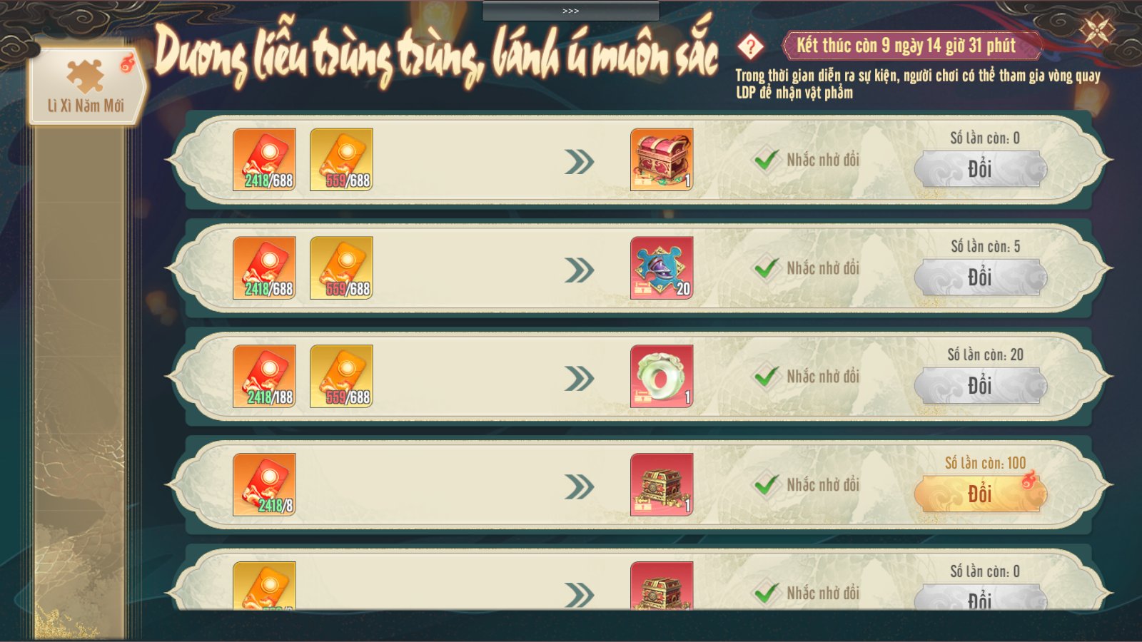 1. LÌ XÌ NĂM MỚI – THU THẬP LÌ XÌ, ĐỔI QUÀ NHƯ Ý!