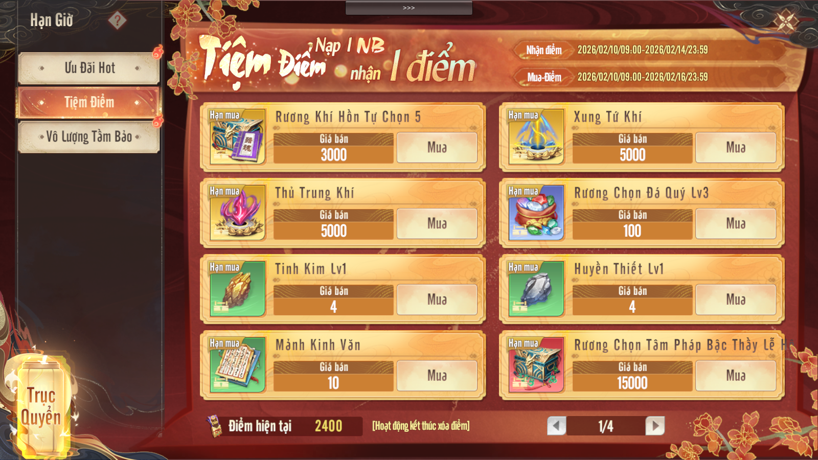 4. TIỆM ĐIỂM - ĐỔI VẬT PHẨM MỚI RƯƠNG KHÍ HỒN TỰ CHỌN!