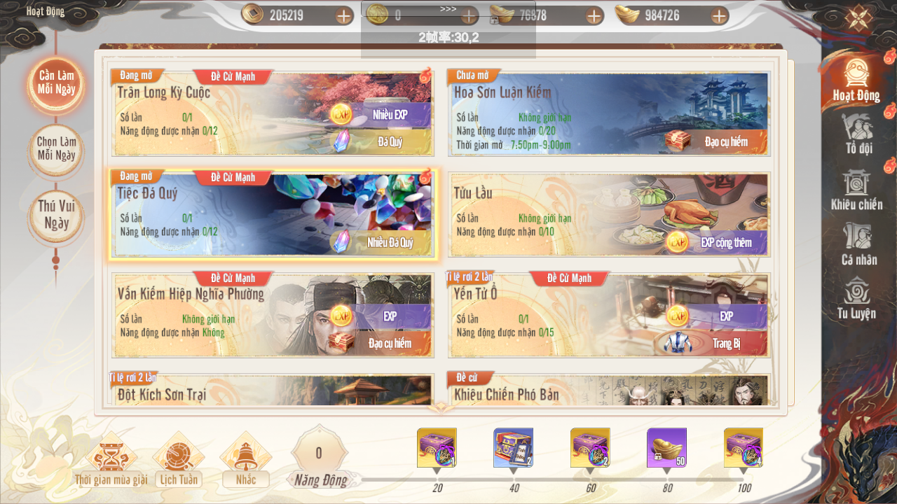 - Tham gia phó bản hàng ngày và khiêu chiến