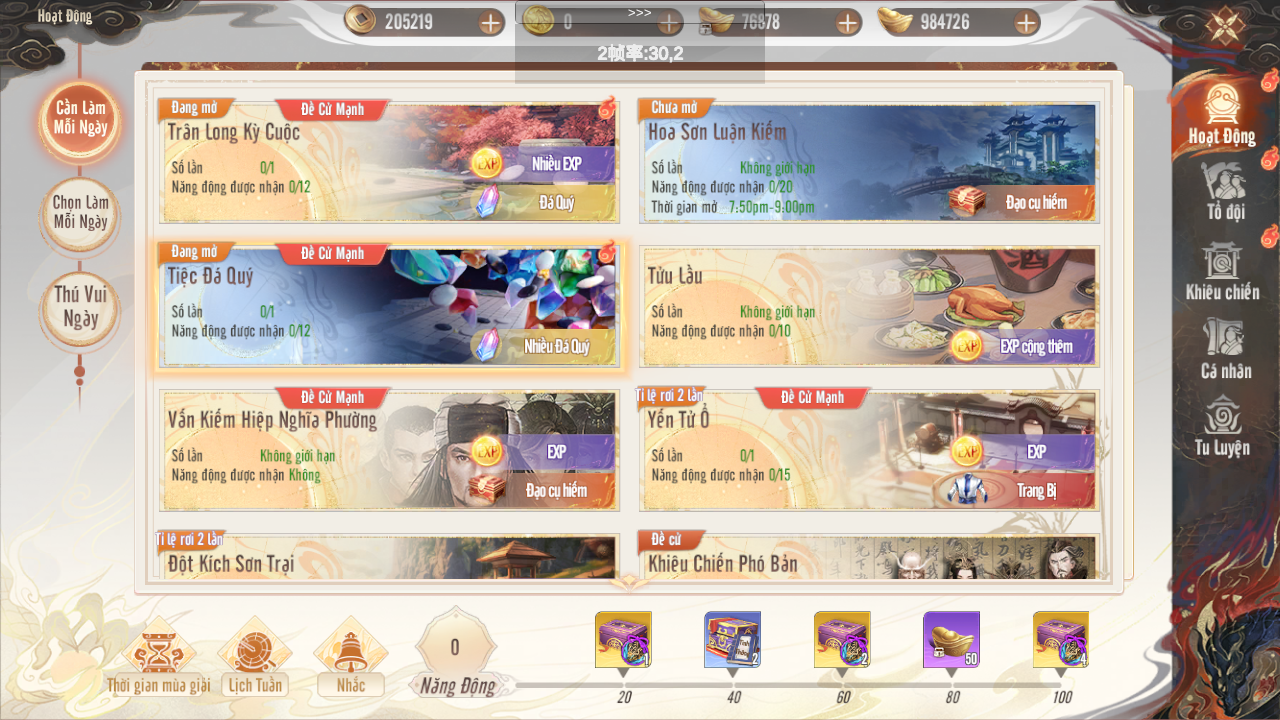 Nội dung: hoạt động Phó Bản Khiêu Chiến nhân đôi tỉ lệ rơi vật phẩm.