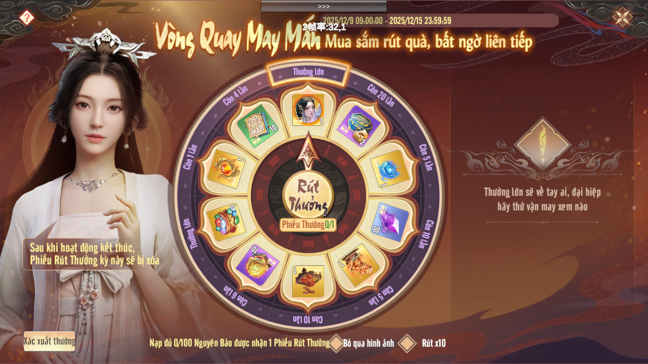 - Mỗi lần tham gia Vòng Quay sẽ tốn 1 Phiếu Rút Thưởng.