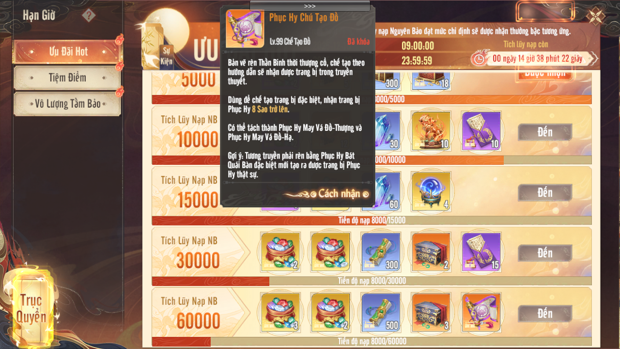 Thưởng lớn: Hào Hiệp Tảo Địa Tăng, Rương Chọn Bảo Vật Cam, 10.000 Nguyên Bảo Khóa.