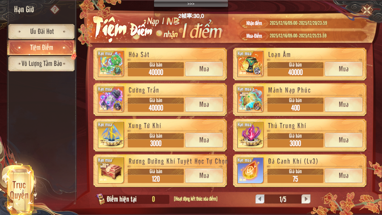 Đổi điểm: 09:00 Ngày 16.12 - 23:59:59 Ngày 21.12.
