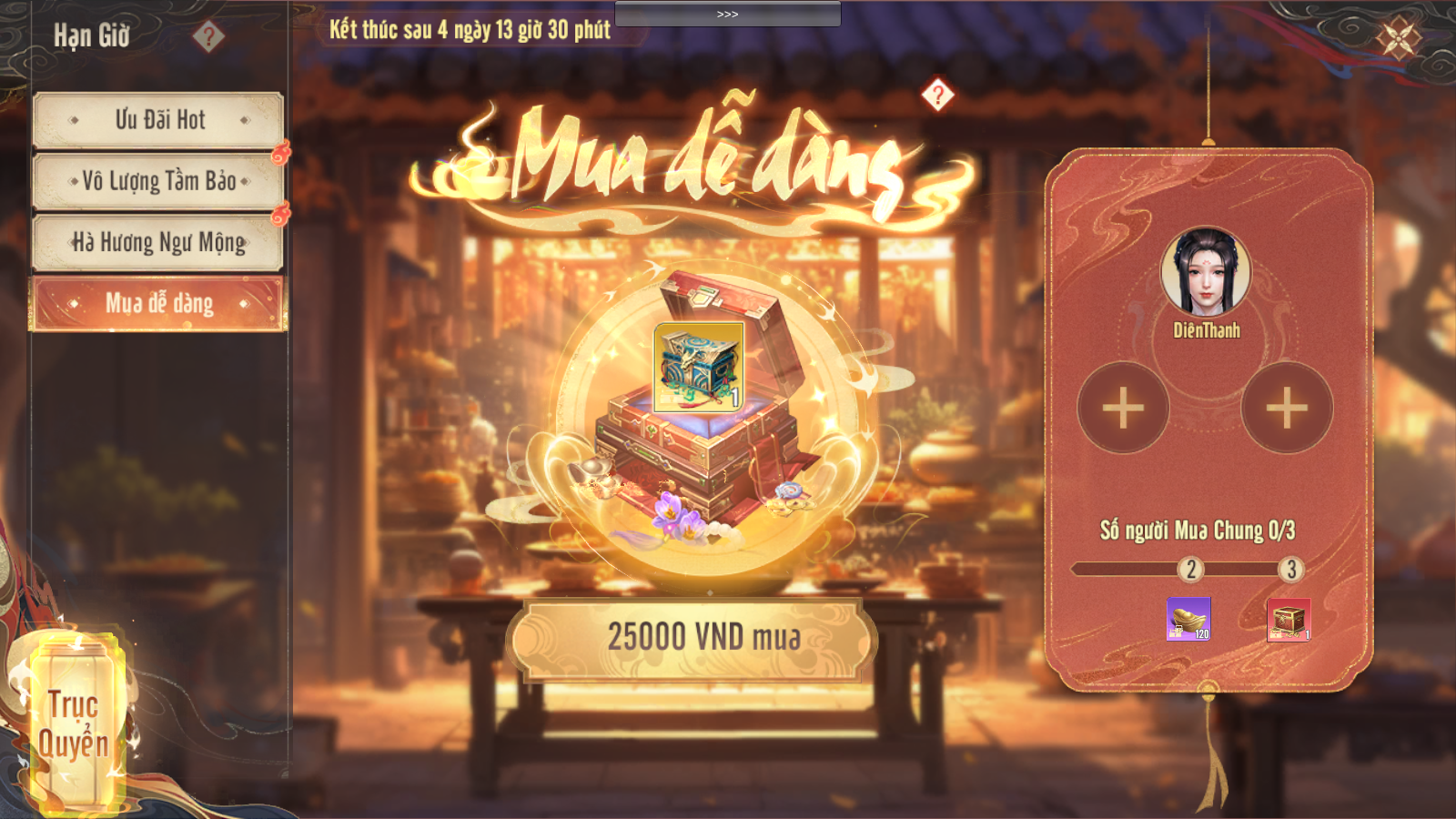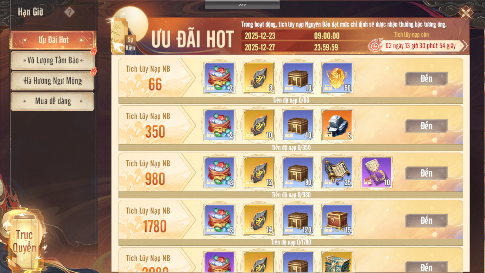 - Mua Quà Hạn Giờ, Quà Mua Trực Tiếp không tính vào tiến độ nạp Phiếu Rút Thưởng.