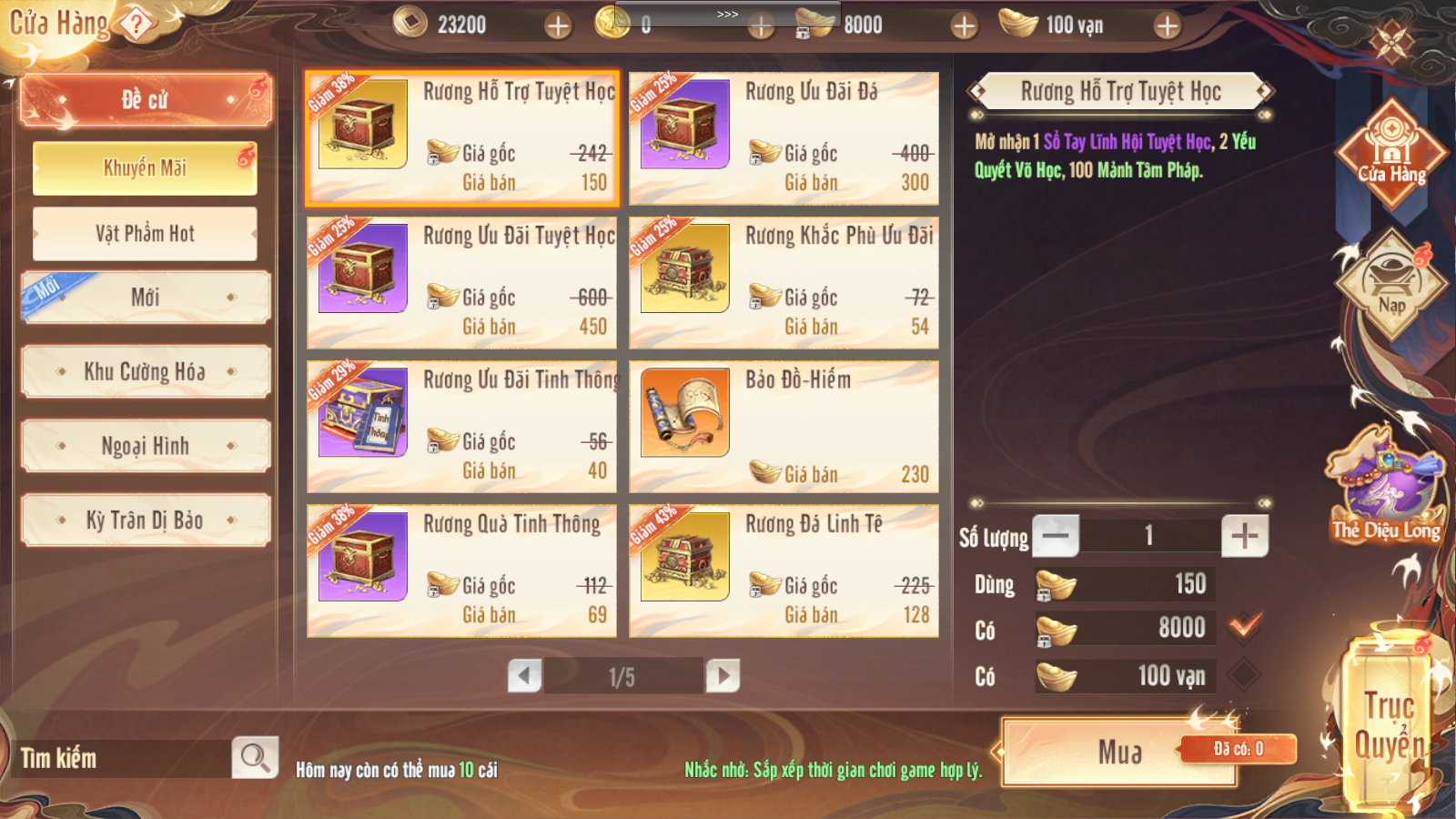| Rương tự chọn Mảnh Hào Hiệp-Tuyệt | 5 |