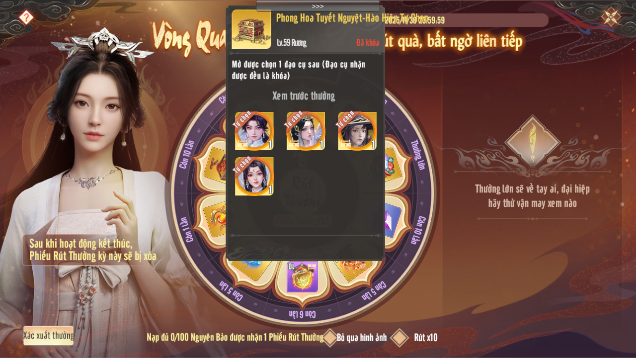 - Trong 1 vòng, nếu số lần thưởng còn 0, thì tiếp theo sẽ không rút được nữa. Thưởng lớn, thưởng đặc biệt trong 1 vòng quay chỉ được rút 1 lần.
