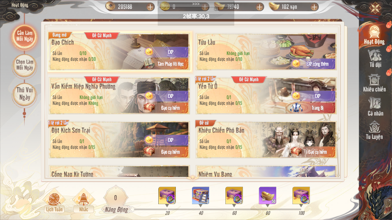 Nội dung: hoạt động Phó Bản Khiêu Chiến nhân đôi tỉ lệ rơi vật phẩm.