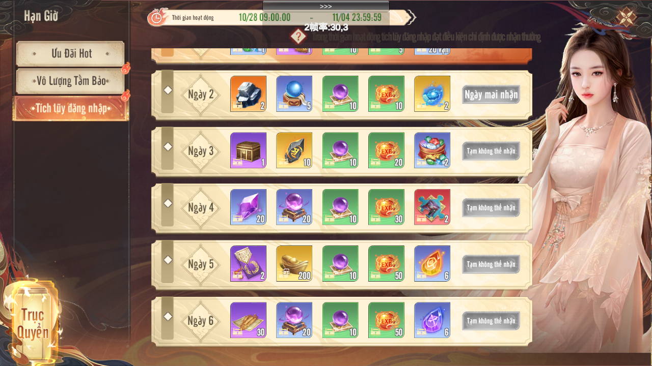Nội dung: Trong thời gian diễn ra sự Kiện Thiếu Hiệp tích lũy đăng nhập đạt mốc sẽ nhận được quà.
