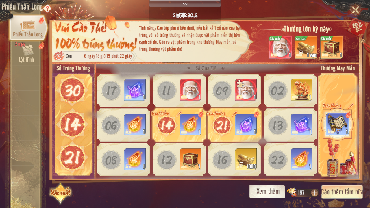 - Cào lớp phủ bên dưới, nếu 1 số ngẫu nhiên trong số của bạn giống với số giải thưởng thì bên cạnh số sẽ hiển thị Vật Phẩm.