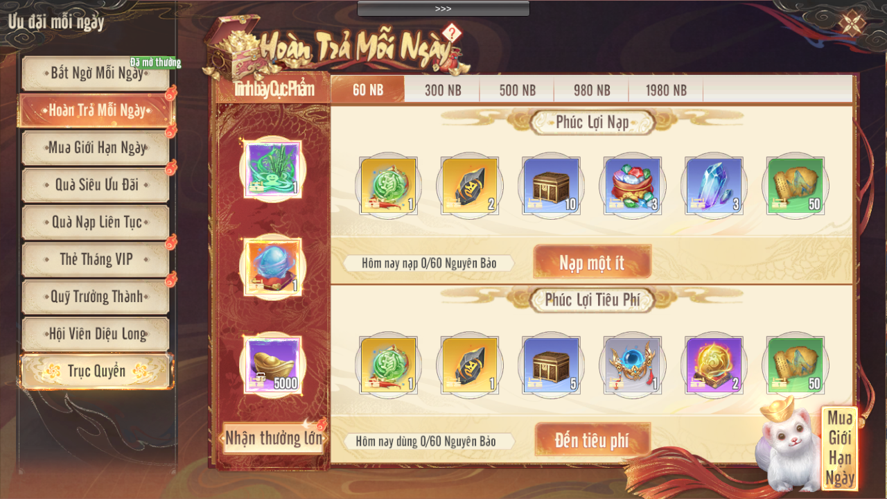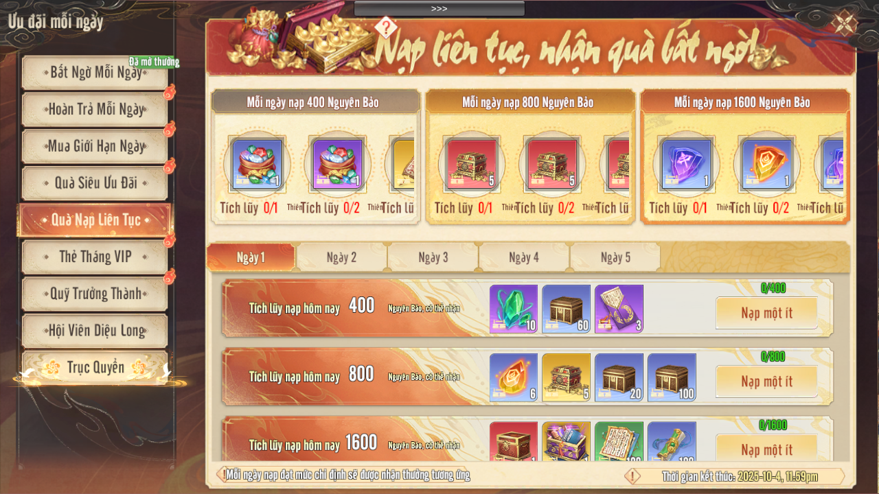 - Mỗi ngày nạp đạt đến mức quy định có thể nhận thưởng tương ứng.