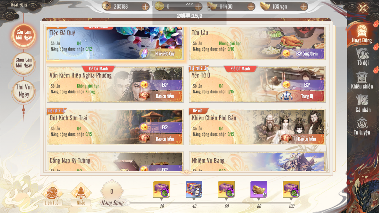 Nội dung: hoạt động Phó Bản Khiêu Chiến nhân đôi tỉ lệ rơi vật phẩm.